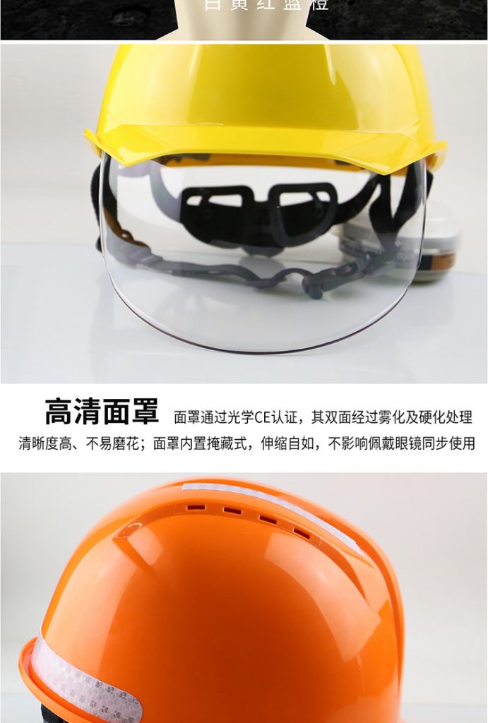 4、面罩:面罩通过光学 CE 认证,其双面经过雾化及硬化处理,清晰度高、不易磨花;面罩内置掩藏式,伸缩自如,不影响佩戴眼镜同步使用;