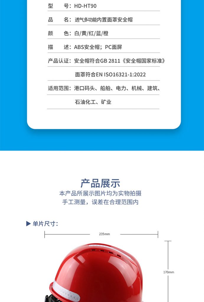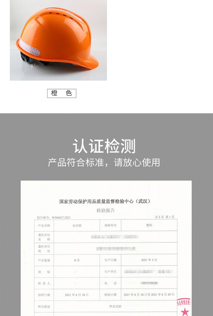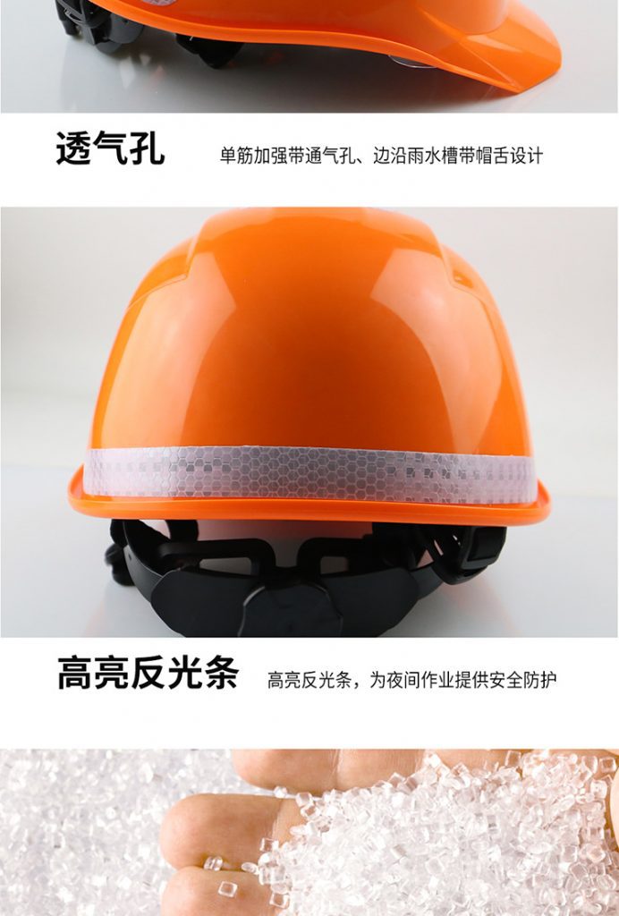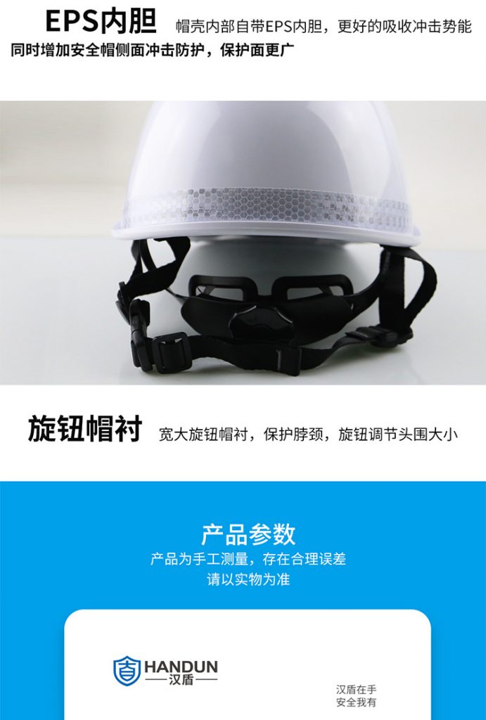 5、反光条设计:帽子顶筋及帽子后面设有反光条,为夜间工作提供防护。